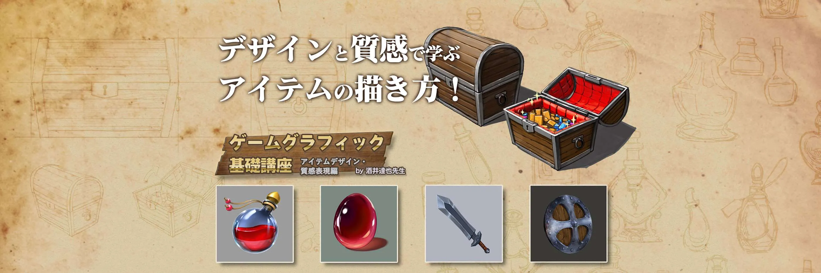この講座は、「アイテムの描き方」が学べる講座です。