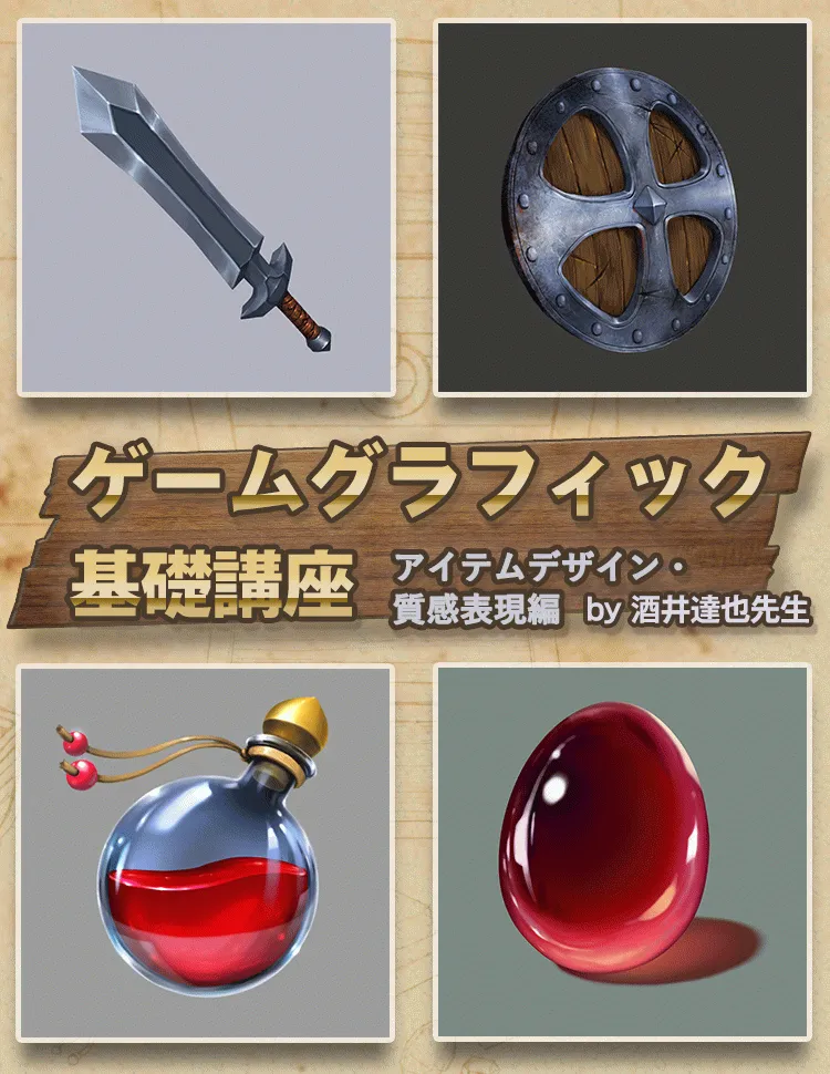 デザインと質感(マテリアル)の2つの要素をキーワードに、ゲームグラフィックとしてアイテムオブジェクトを描くときのポイントを解説します。