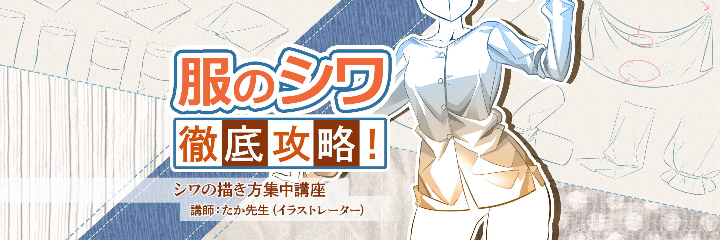 この講座は、服のシワの描き方を学ぶ集中講座です。