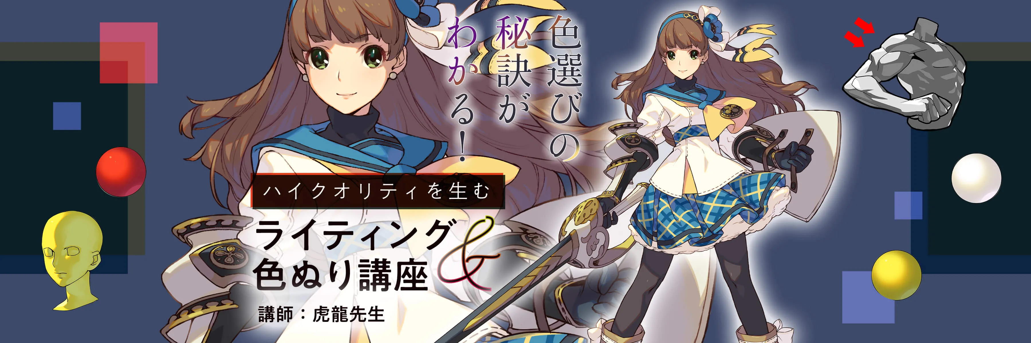 ゲーム業界でイラストレーターとして活躍している、虎龍先生による色塗り・ライティング講座。