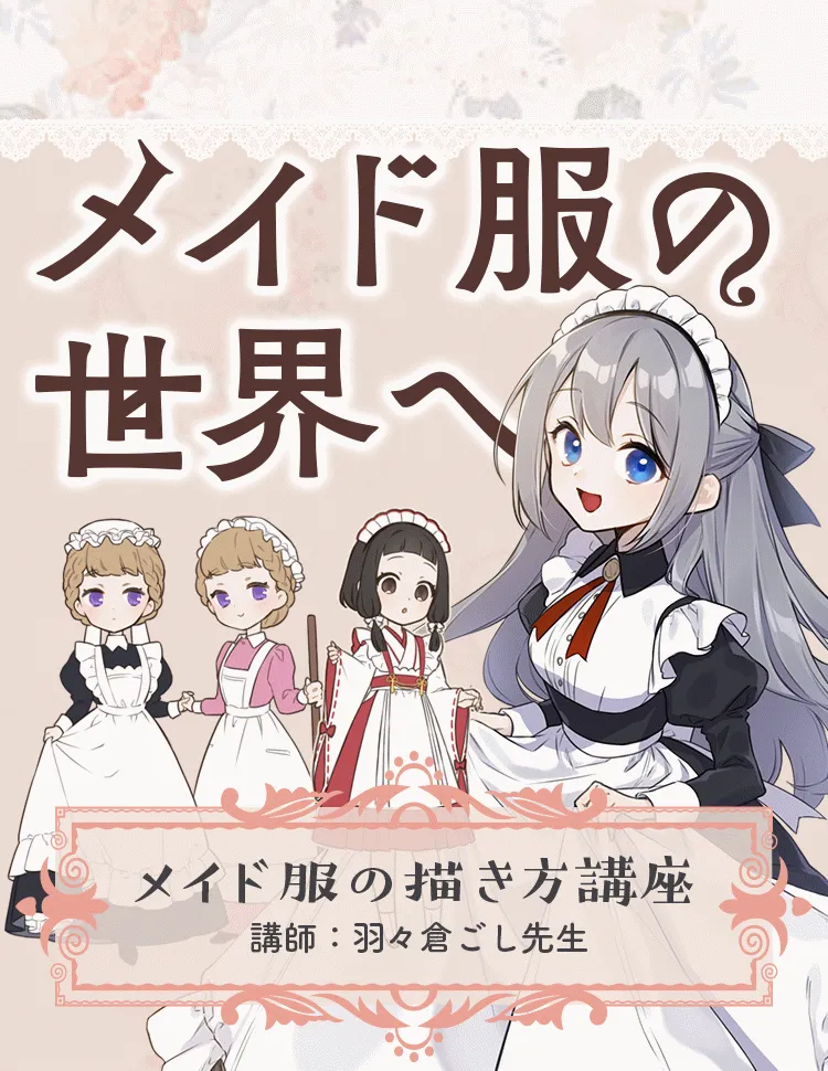 本講座ではメイド服の描き方を実演を交えながら深く&わかりやすく解説します。