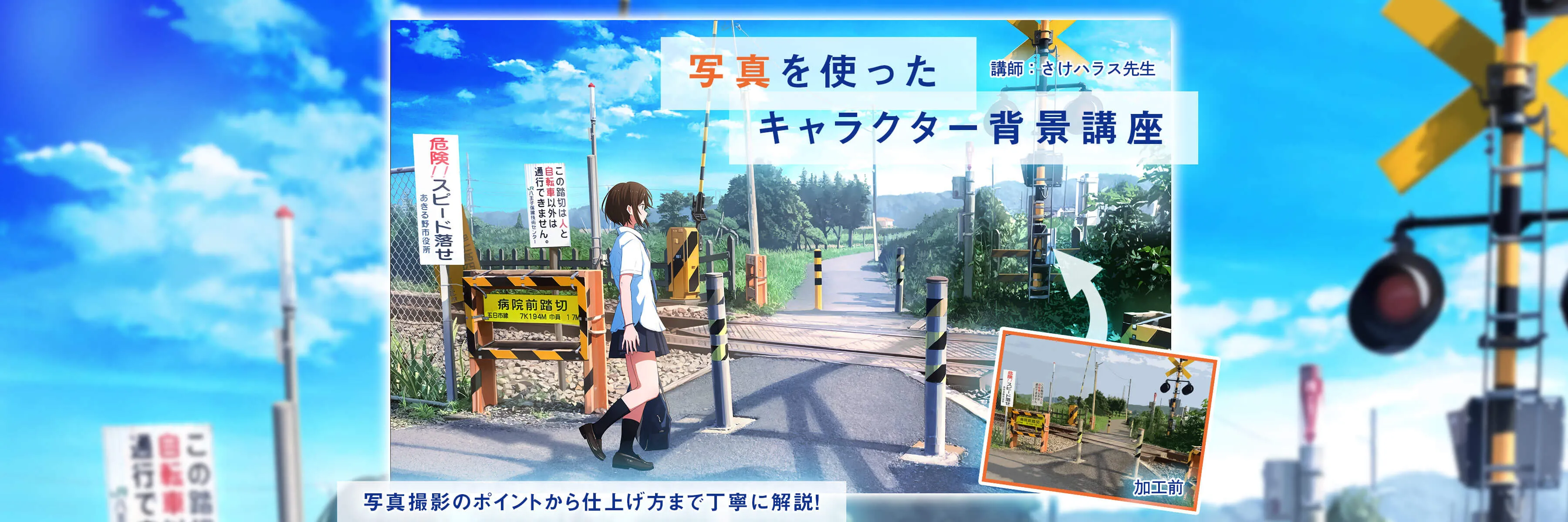 この講座は、写真を使ってリアルで美しい背景の作り方が学べるイラスト講座です。