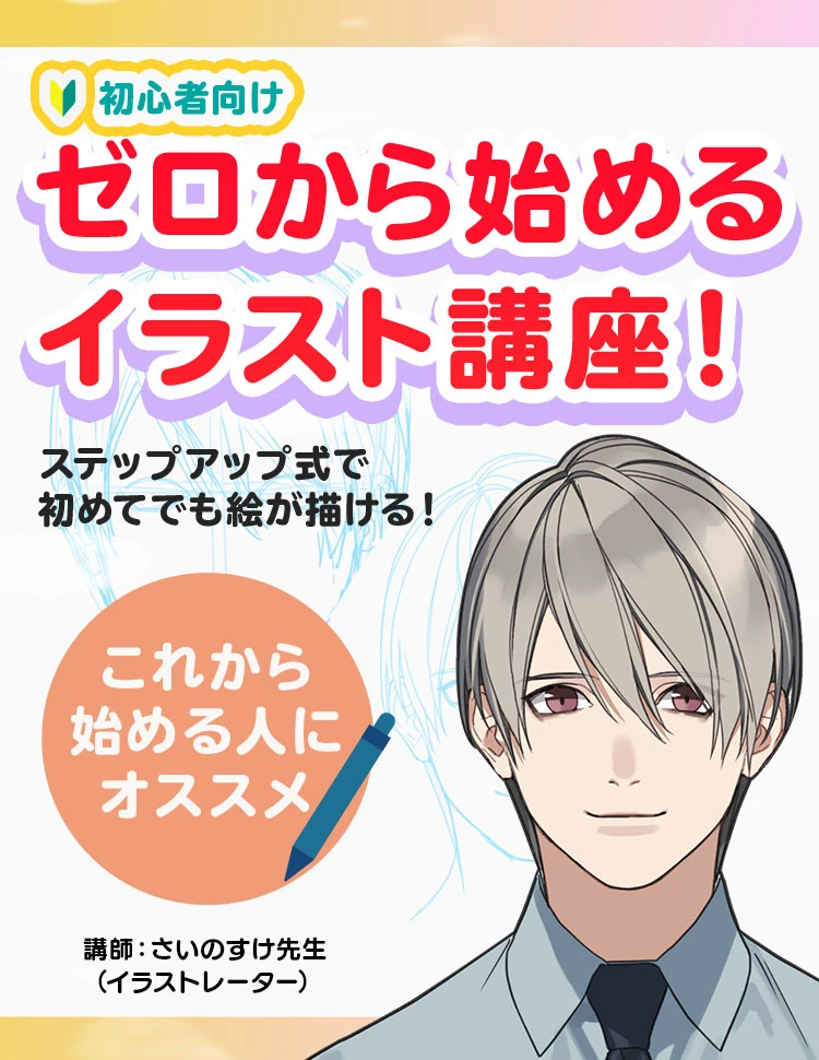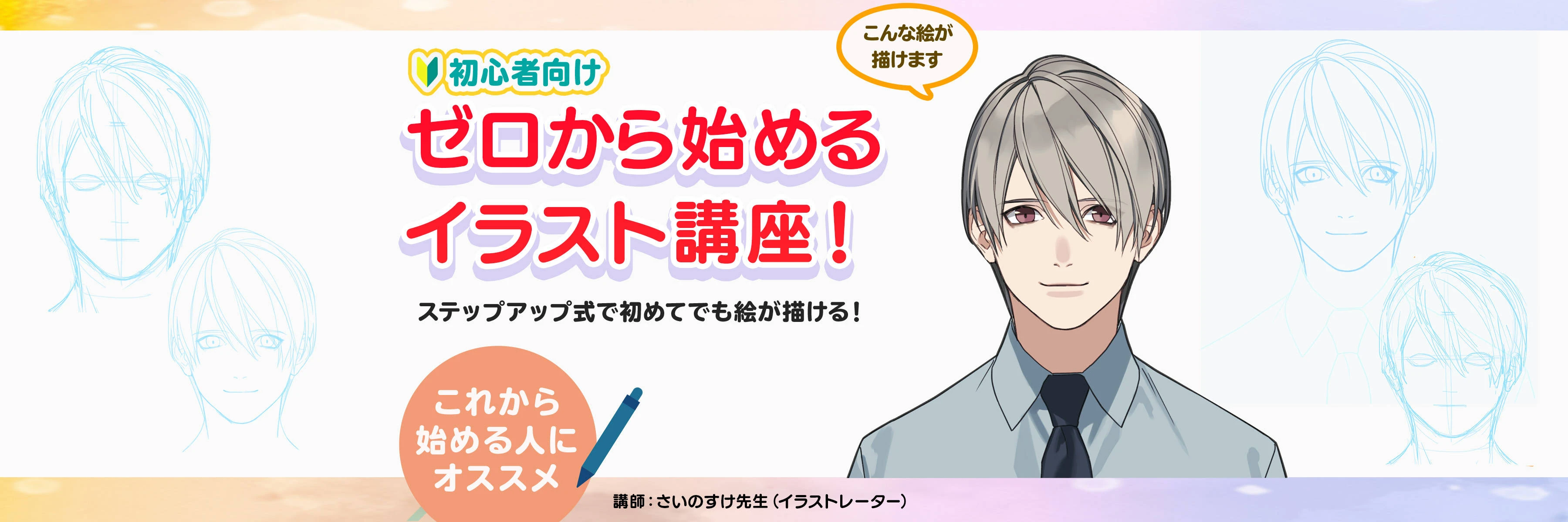 この講座は、イラスト初心者向けの男性キャラの描き方講座です。
