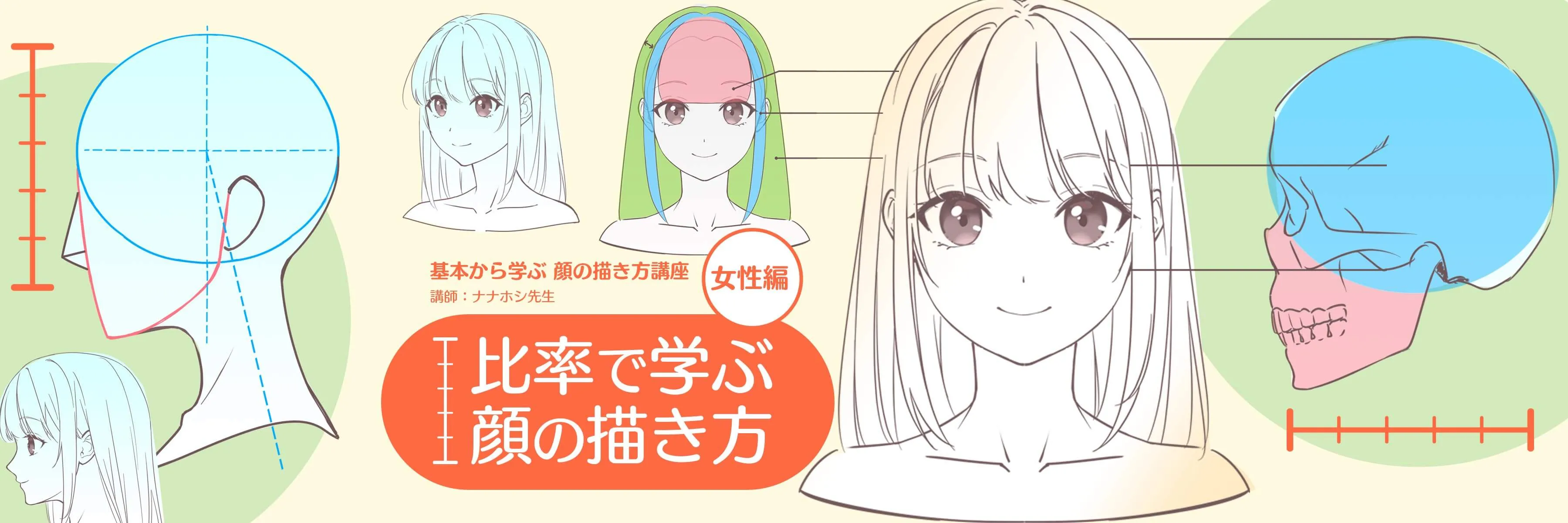 「基本から学ぶ 顔の描き方講座 ー女性編ー」では