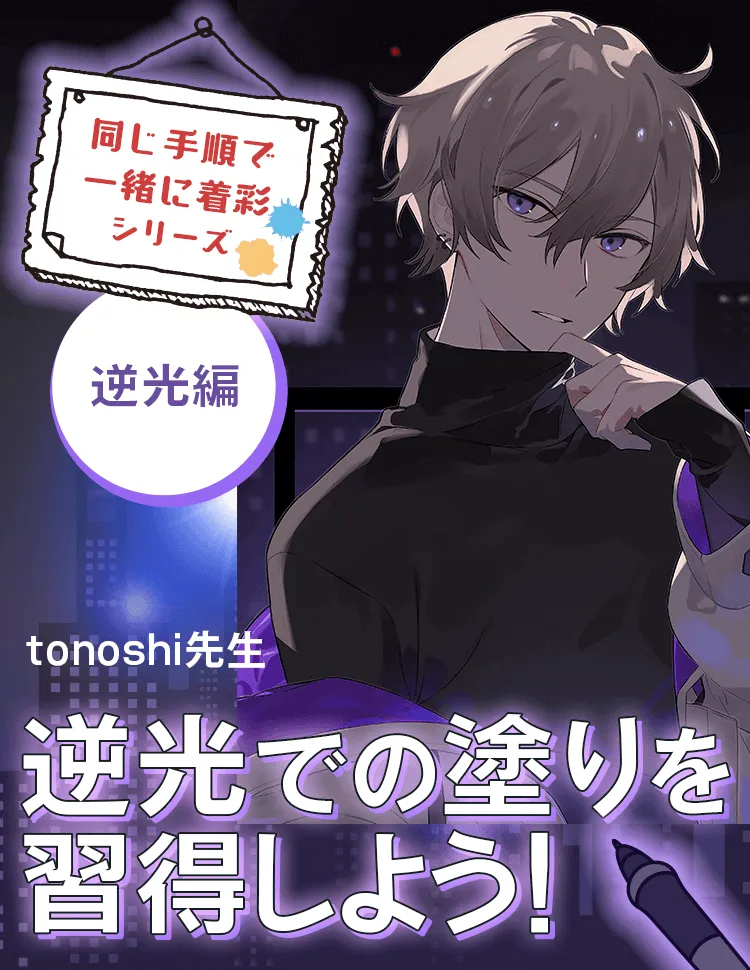 今回の講座では、夜・逆光の条件下で色塗りを進めます。