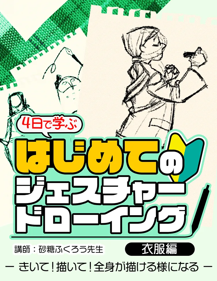 この講座は、ジェスチャードローイングの手法を使って、服を着たポーズを描く練習をしていく講座の入門編です。