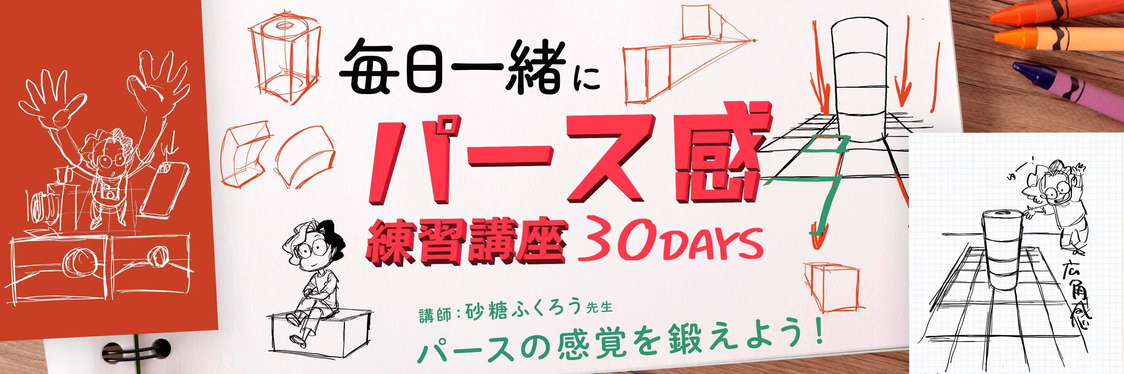 この講座では「パース感」と「線を引く力」を鍛える練習を30日間行います。
