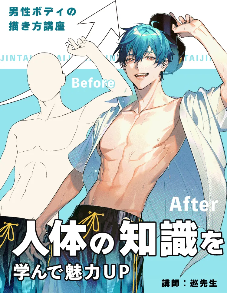 男性キャラを描くのが好きな方、ちょっと身体をこだわって描いてみたい方にオススメの講座です。