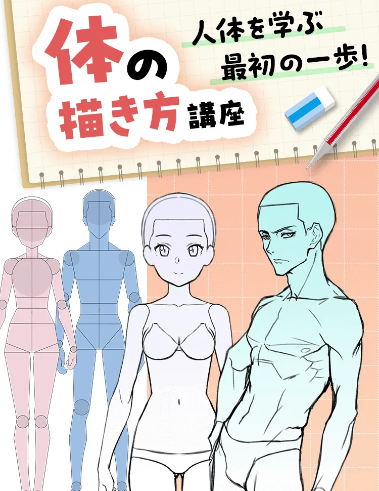 身体も描けるようになりたいけど、何から手を付ければ良いかわからない!という方は、まずはこの講座からやってみましょう。