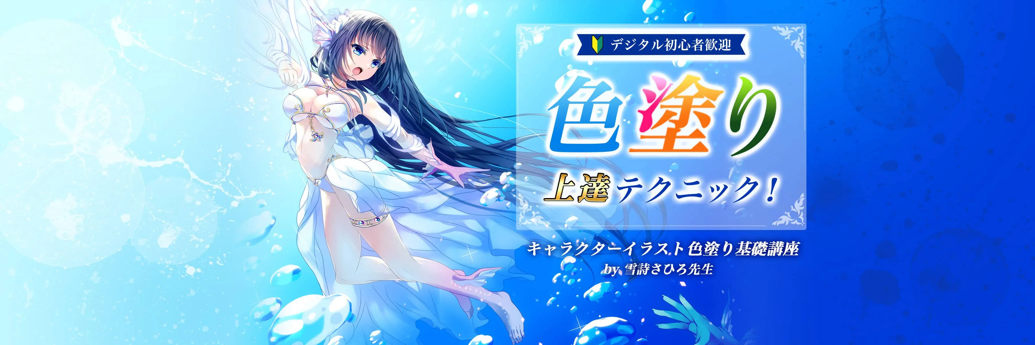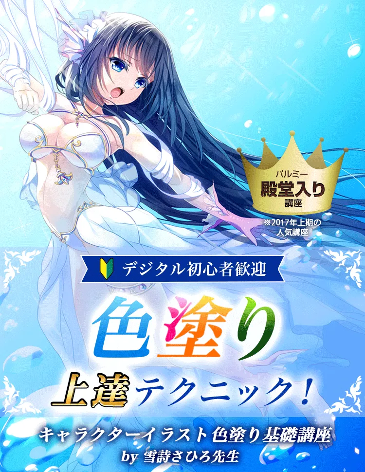 イラストレーター 雪詩さひろ先生が、デジタルでの色塗り手順やポイントを、資料と実演を交えてレクチャーします。