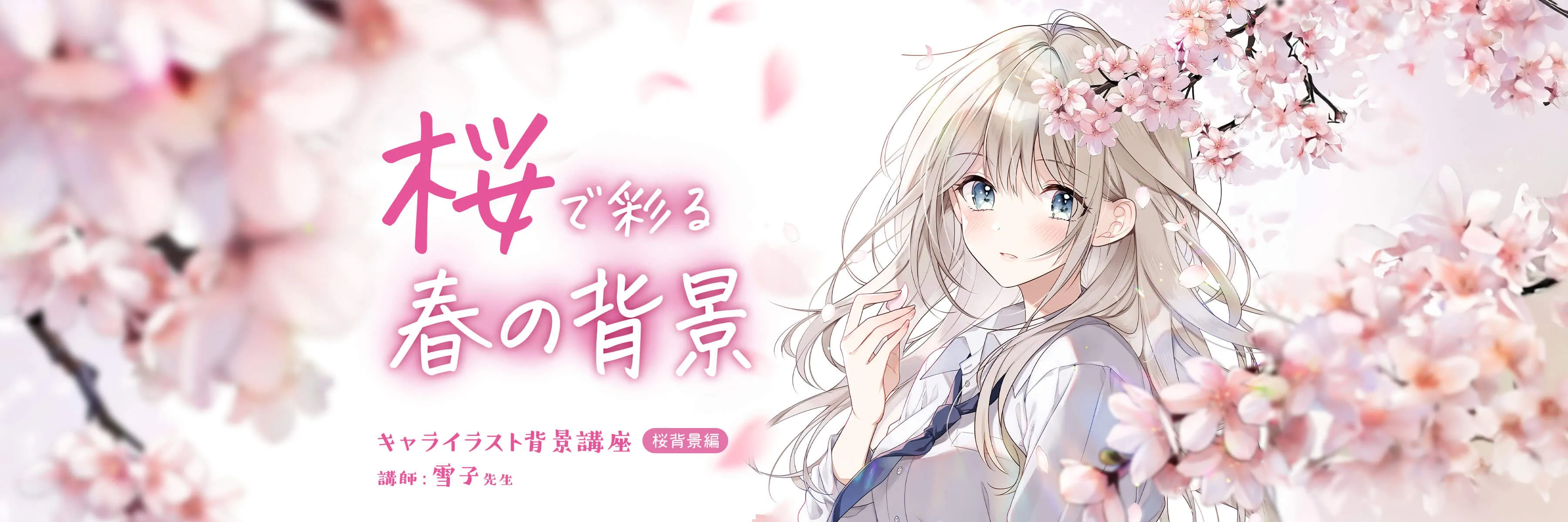 この講座はそんな桜を使った背景を、配布素材を活用して効率的に描く方法を学ぶ講座です。