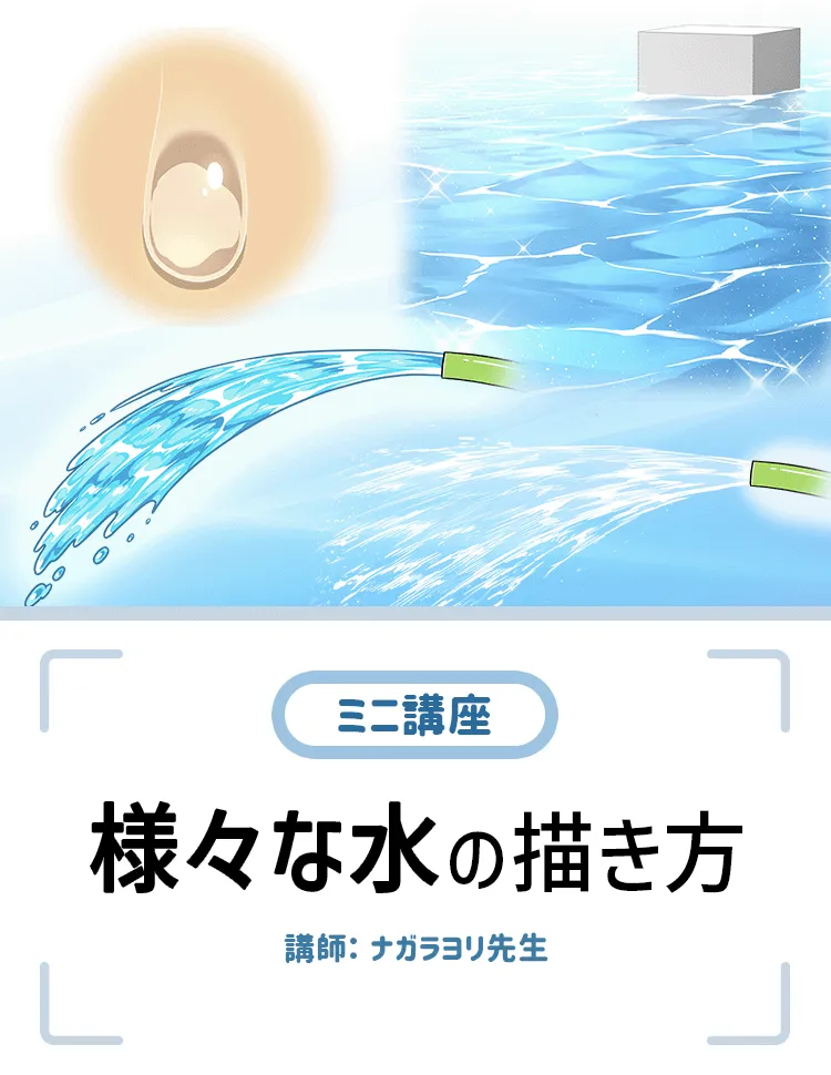 イラストレーターのナガラヨリ先生が、水滴や雨、水流・水面といった