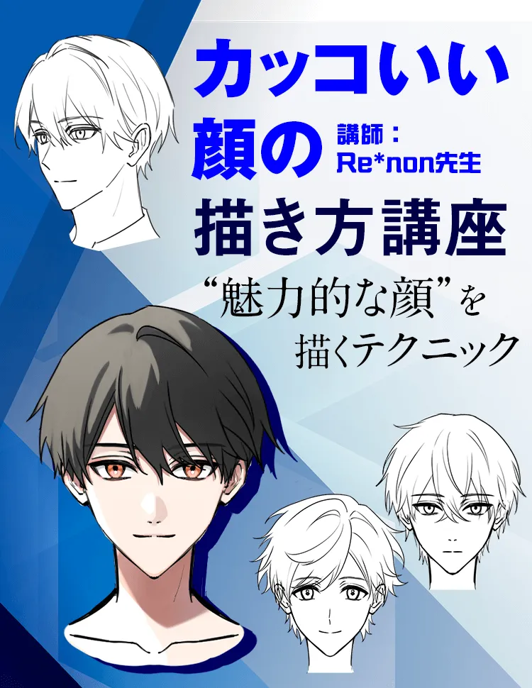 男性Vtuberのビジュアル制作を数多く手がけるイラストレーター・Re*non先生が、「カッコいい顔」を描く秘訣 を徹底解説。