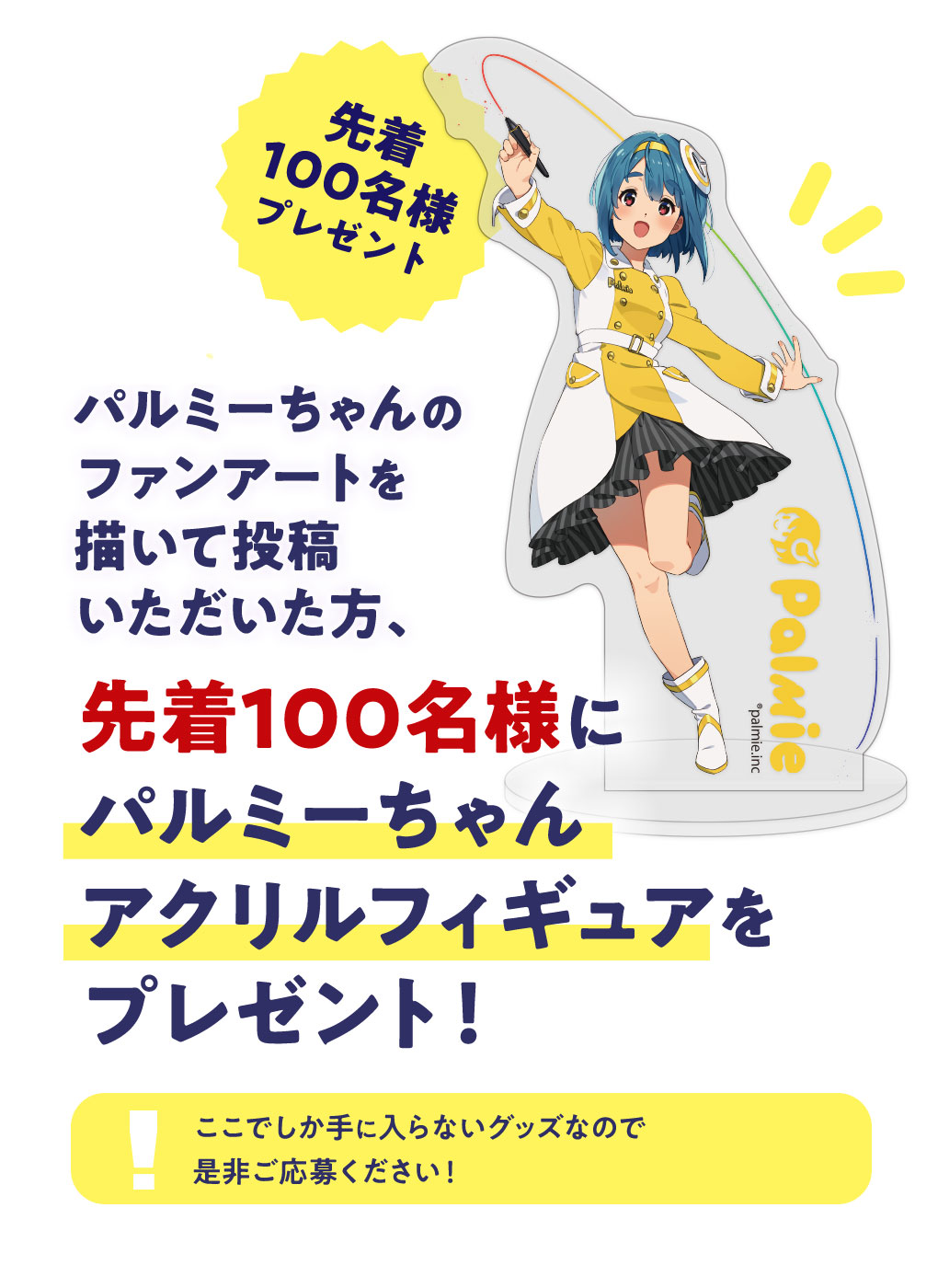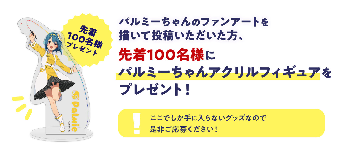 - パルミーちゃんのファンアートを募集します。