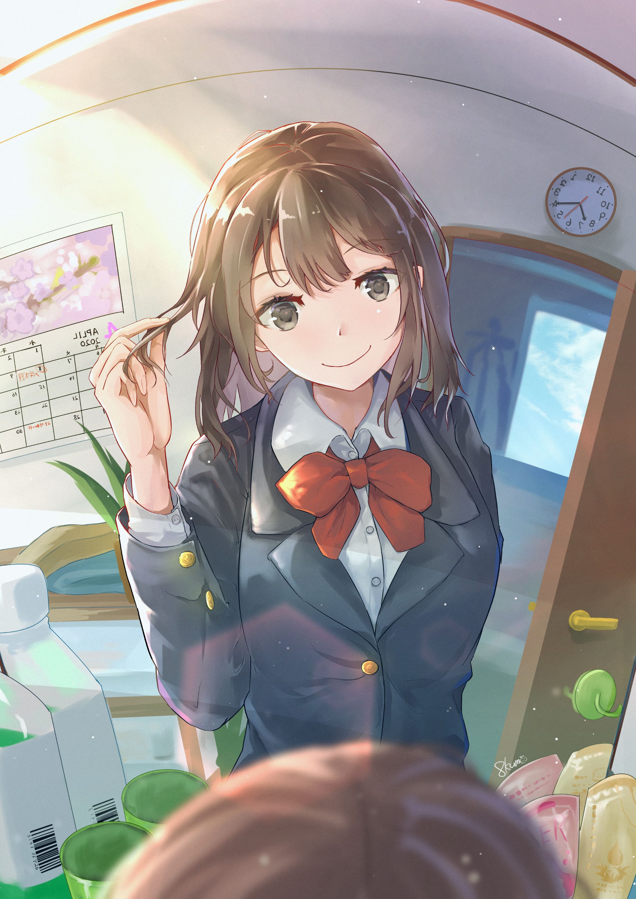女の子もただ鏡の前に立ってるのではなくて、少し小首をかしげて髪を触って、新しい生活へのワクワク感を感じます。手前の頭が被写界深度の影響でボケたり、鏡に写った時計が登校時間で反転していたり、レンズフレアがおしゃれに取り入れられたり、細かなテクニックで丁寧に仕上げているのが特に良いなと感じました。