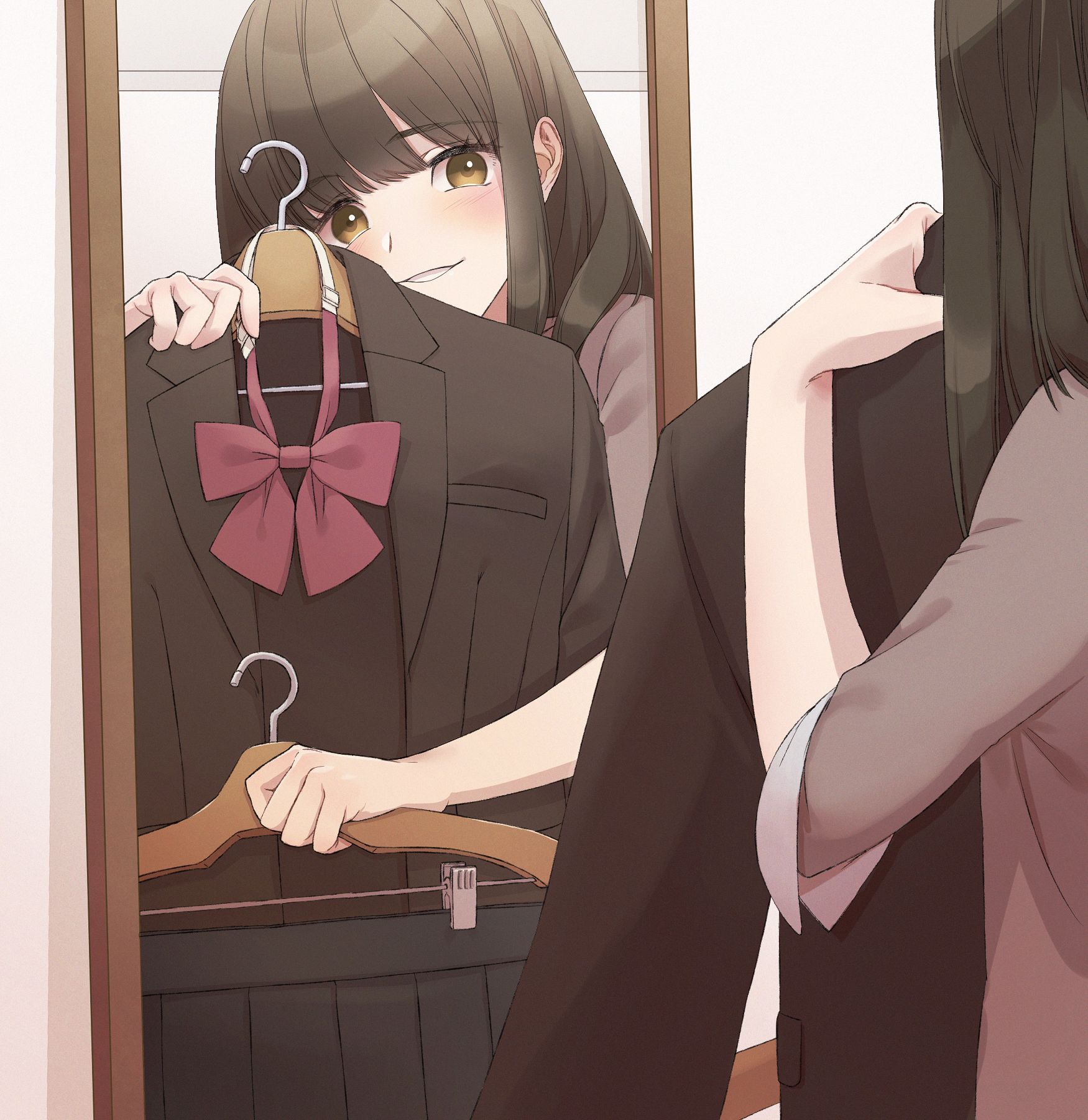 女の子の表情に惚れました。ニマニマしていて可愛いです。でもそれだけじゃなくて、ハンガーの制服のかけ方がきちんとリアル!もしかして実体験なのでしょうか?