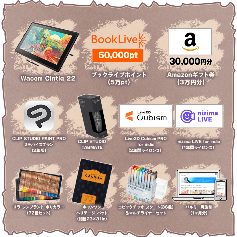 ・イラストのキャンパスサイズ、技法や画材の指定はありません