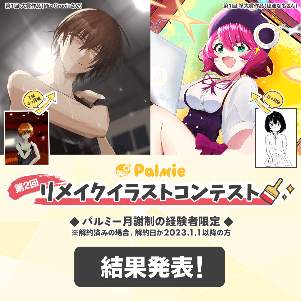 ※過去にビフォーアフターのイラストをパルミーへご提出されたことのある方は、アフターとして提出した作品をリメイクしていただくか、以前提出した作品とは異なる作品にてご応募ください。