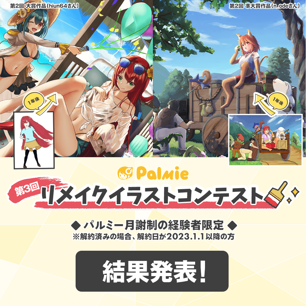 ※過去にビフォーアフターのイラストをパルミーへご提出されたことのある方は、アフターとして提出した作品をリメイクしていただくか、以前提出した作品とは異なる作品にてご応募ください。
