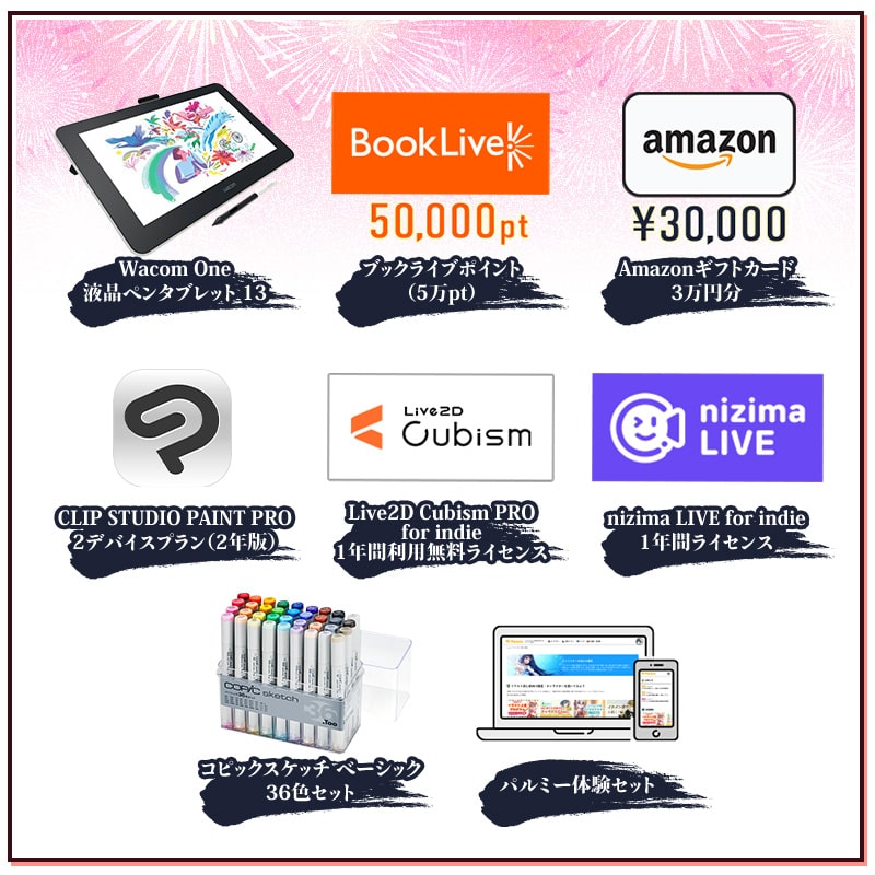 審査員のぷきゅのすけ先生が厳選した「おすすめ講座」10講座を含む50講座の中からお好きな講座を3つ選んでいただき、1ヶ月間無料で受講できるシリアルコードです。