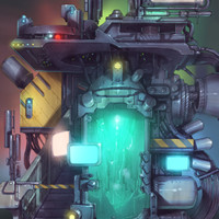次に、一番上に新規レイヤーを作成し、描画モードを「オーバーレイ」に変更、機械全体の選択範囲を取得し、モニターなどの光をブラシで塗ります。