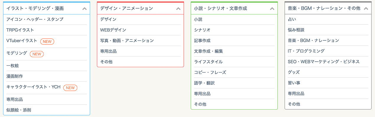 また、商品カテゴリは幅広く用意されていますが、特にイラスト系の依頼が多いのも大きな特徴です。