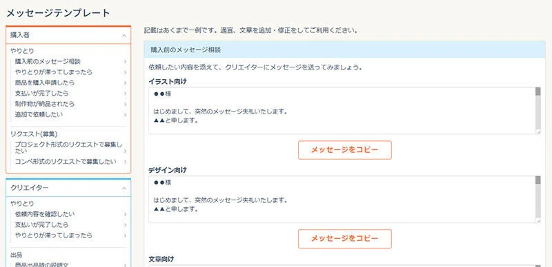 やり取りに不安がある方は、用意されているメッセージテンプレートを活用しましょう。