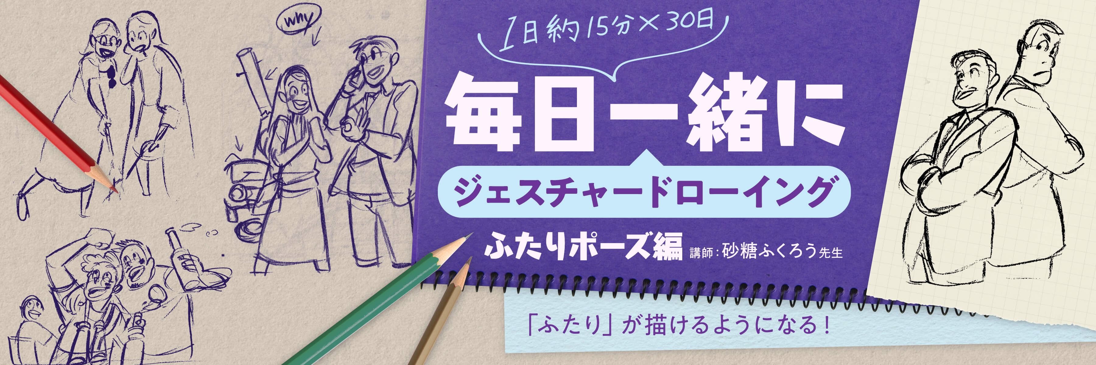 砂糖ふくろう先生による「毎日一緒にジェスチャードローイング・ふたり編」( https://www.palmie.jp/courses/330 )を公開しました。
