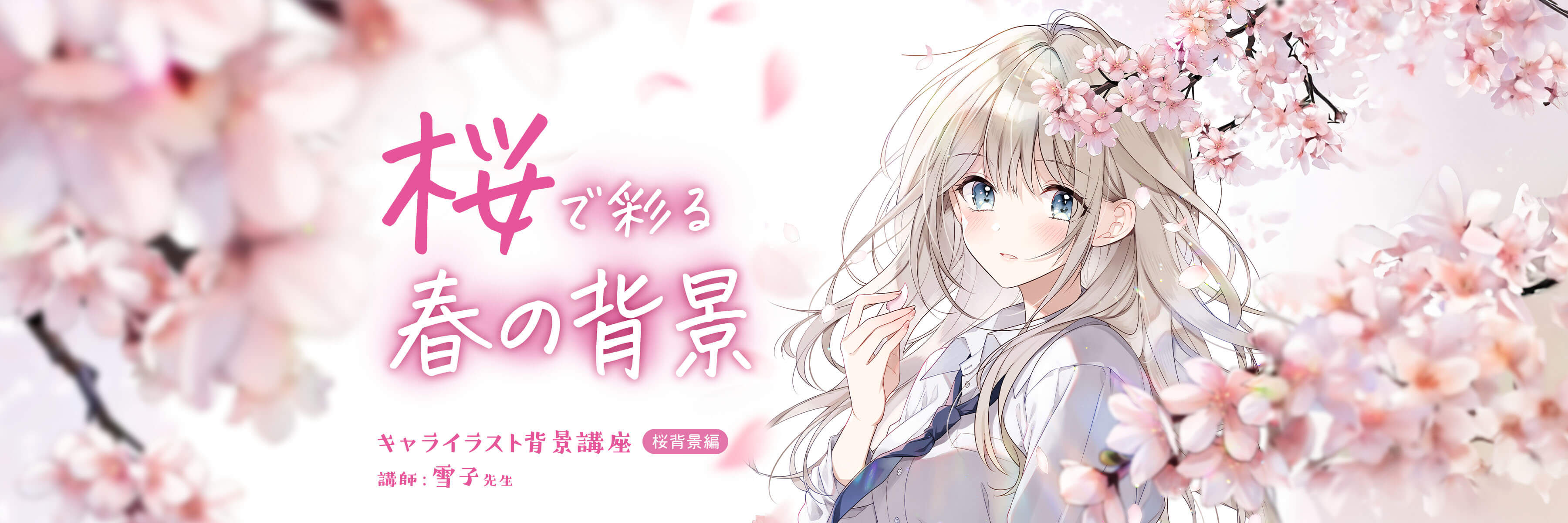 この講座はそんな桜を使った背景を、配布素材を活用して効率的に描く方法を学ぶ講座です。