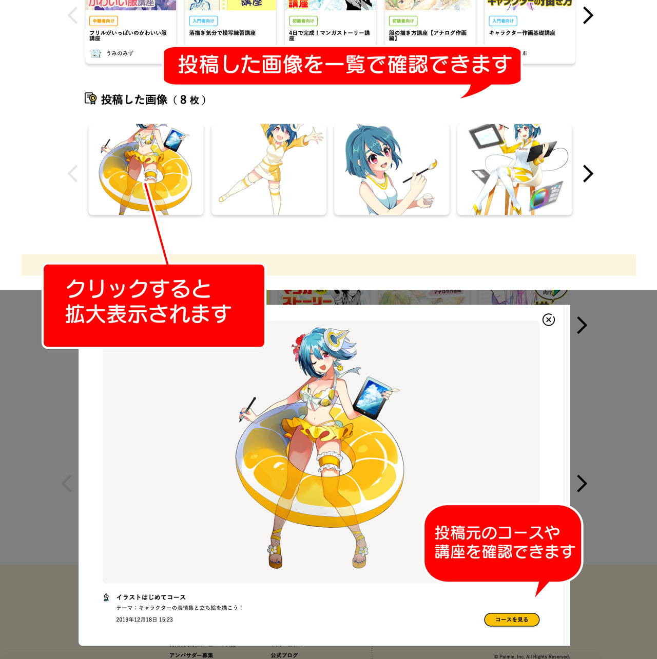 投稿した画像から、そのコースや講座のリンクに飛ぶことも出来ます。